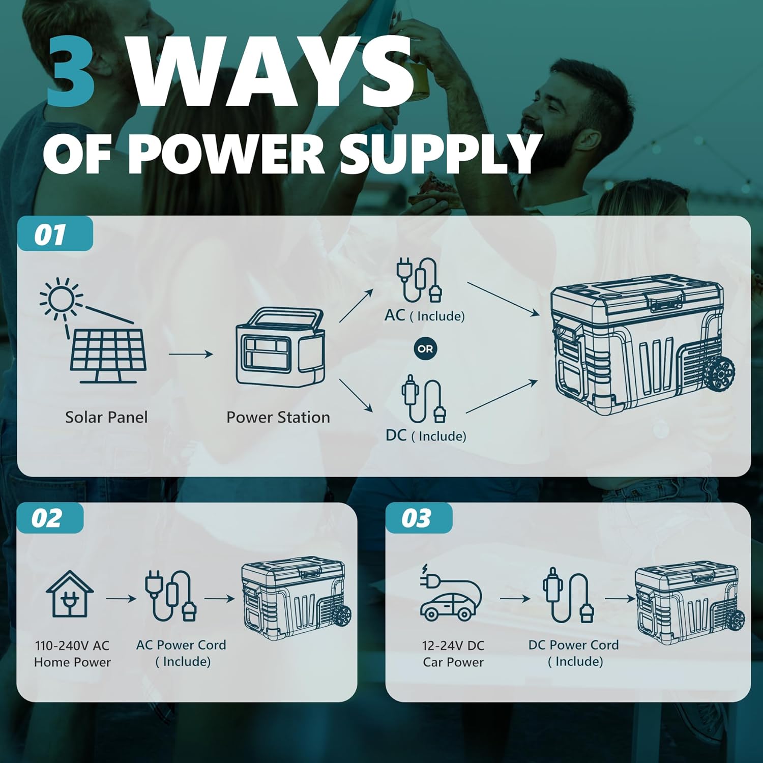 - Battery Protection & Multiple Power Supplies; This portable electric cooler offers 3-level battery protection, allowing you to adjust the input power between L/M/H modes to prevent overload or vehicle battery drain. The portable fridge can be powered by both DC and AC, making it suitable for various scenarios
